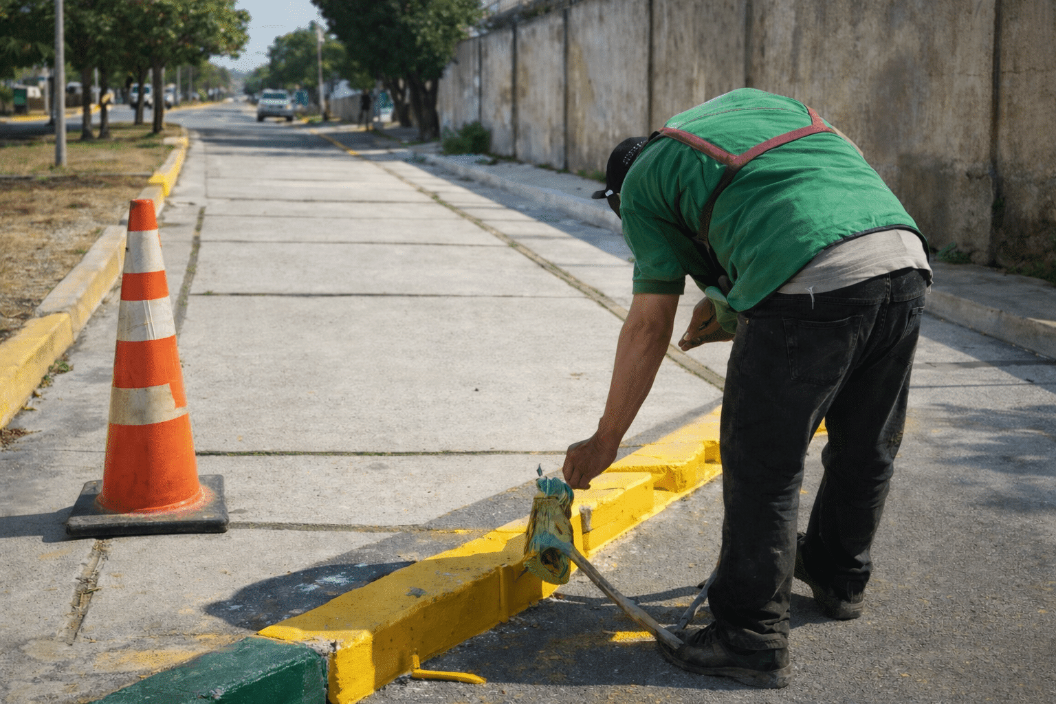 A través de la Cuadrilla Vial, se realizaron trabajos de instalación de boyas y aplicación de pintura en rampas, pasos peatonales y guarniciones.